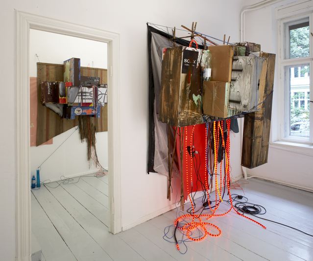 Knut Eckstein builds models. However, it is never really clear what these models are. There are aesthetic leanings: towards facades, gaps between buildings, boundaries of all kinds, as well as exterior architectural situations. In the end, they seem to quote all that the flaneur notices if he pays attention during his travels in this world and is interested in the ‘rear landscapes’ of our society. Eckstein’s models are utopias of the everyday; they come from the everyday and disappear into it again. They appear like fictional notations, constructed from cardboard, various adhesive tapes, wooden battens, neon lamps, the usual industrial materials. It always sounds so easy, but Ecksteins’s works offer projection screens; above all, because they programmatically withdraw from reality and simultaneously start from an actual, existing moment. This makes them fundamentally ambiguous in their attitude, for they remind one of something that they never really are. They are in a permanent condition of possibility. Can one explain it that way? Perhaps, for if we speak of a condition, we do not mean a selective but an atmospheric space, a space in which ambivalent perceptions have a place. In this terrain the optional qualities of KE’s works play a major role; and because this is so, or at least appears to be so, everything remains in limbo. (...)